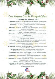 All’Oasi dei Discepoli, residenza per anziani, il periodo natalizio sarà arricchito da tante iniziative pensate per rendere queste settimane ancora più speciali. Musica, laboratori, incontri